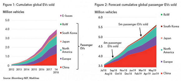 电动车销量实现下一个百万级的突破或将花费6个月之久,彭博新能源财经则预计到2019年3月份,全球电动车累计销量将达到500万辆。