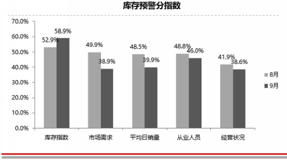 近日,中国汽车流通协会发布的最新一期“中国汽车经销商库存预警指数调查”VIA(Vehicle Inventory Alert Index)显示,9月份汽车经销商库存预警指数为58.9%,环比上升6.7个百分点,同比上升10.2个百分点,库存预警指数重回高位,位于警戒线之上。