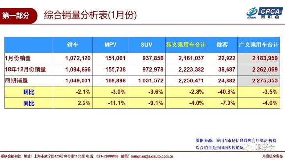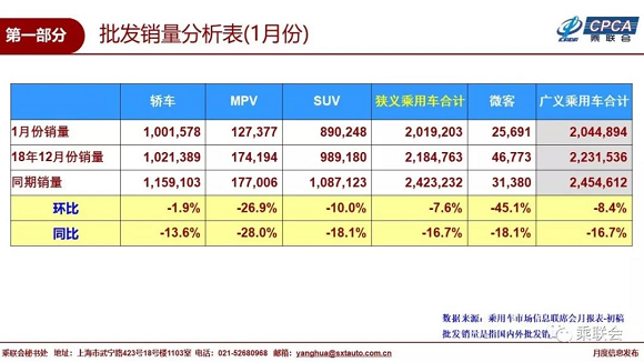 2019年1月份全国乘用车市场分析