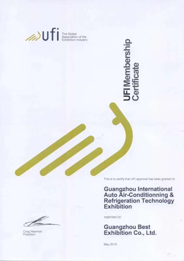 近日,广州市巴斯特会展有限公司及公司旗下展会品牌“广州国际车用空调展”获得UFI(国际展览联盟认证)证书(以下简称UFI),成为2019广州地区首个UFI认证的国际品牌展!
