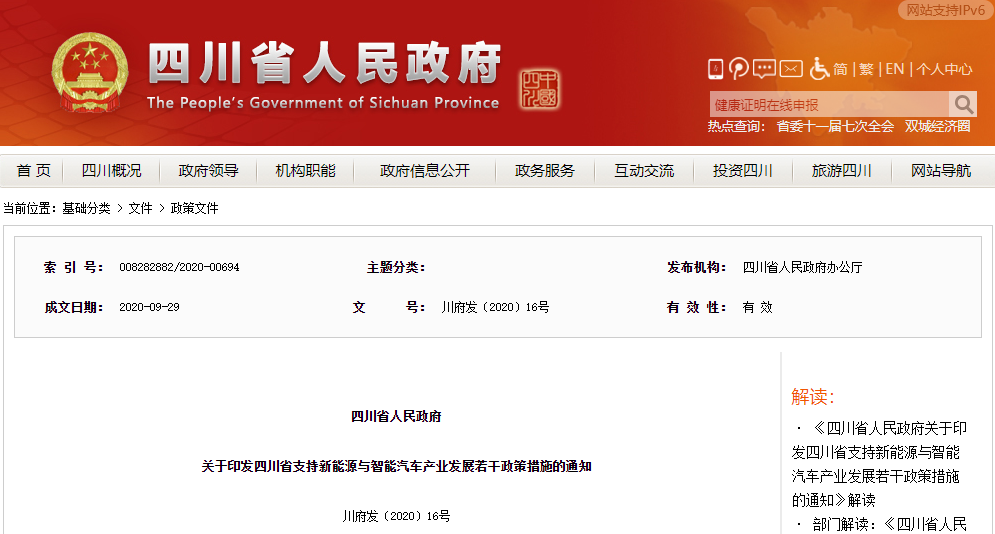 近日,四川省政府印发《四川省支持新能源与智能汽车产业发展若干政策措施》,将此前发布的《意见稿》正式确定。而其中18条措施,将支持四川省新能源与智能汽车产业发展。