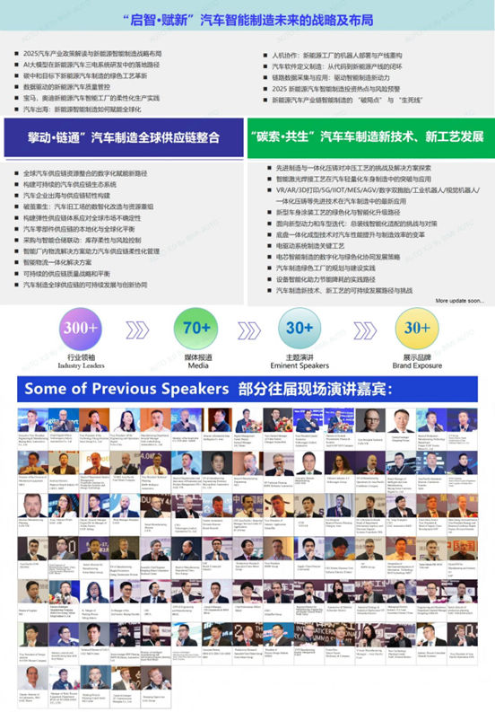 覆盖主机厂、Tier1、智能工厂方案商、装备制造、工艺材料、AI技术、绿色制造、国际供应链等多个维度,一站式链接汽车产业关键节点。