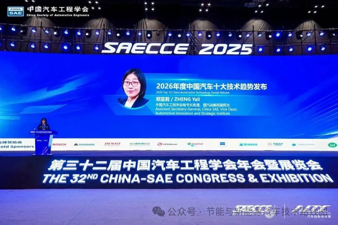 10月24日,在第三十二届中国汽车工程学会年会暨展览会(SAECCE 2025)新能源汽车主论坛上,中国汽车工程学会秘书长助理、国际汽车工程科技创新战略研究院副院长郑亚莉代表中国汽车工程学会正式发布《2026年度中国汽车十大技术趋势》。