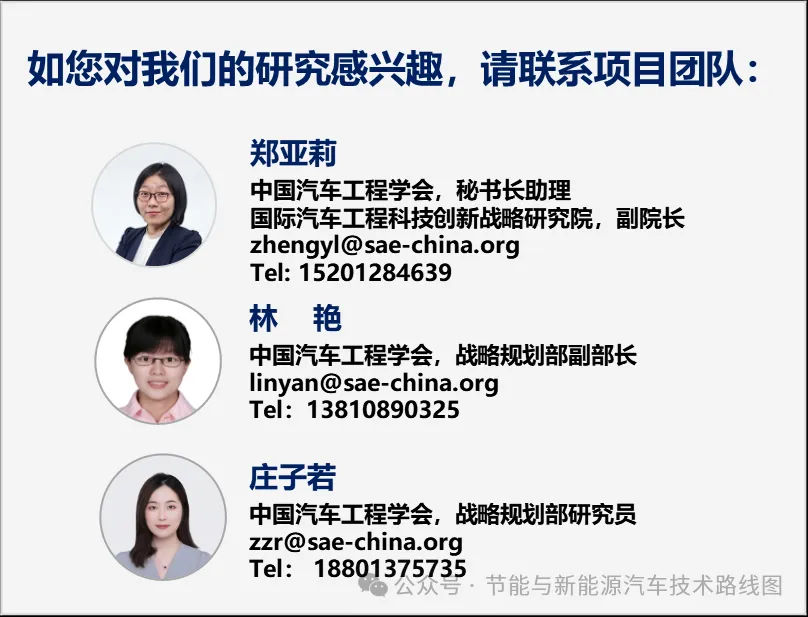 感谢行业机构、企业、高校和研究机构的各位领导、专家对节能与新能源汽车技术路线图、汽车科技预见、汽车科技评论研究工作长期以来的关注和大力支持,我们将不断总结经验,持续完善研究方法,强化研究平台建设,为行业提供更多高质量、权威的研究成果,打造专业的国际汽车工程科技智库,为推动汽车科技创新做出更大的贡献!