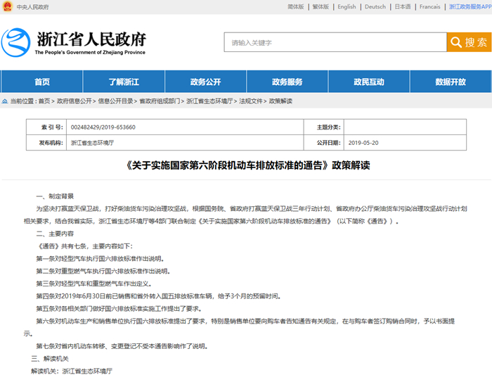 5月20日,浙江省生态环境厅、浙江省经济和信息化厅、浙江省公安厅、浙江省市场监督管理局联合发布了《关于实施国家第六阶段机动车排放标准的通告》(下称《通知》)。《通知》指出,浙江将于7月1日起对轻型汽车和重型燃气车实施国六标准。轻型汽车是指最大设计总质量不超过3500 [详细]
