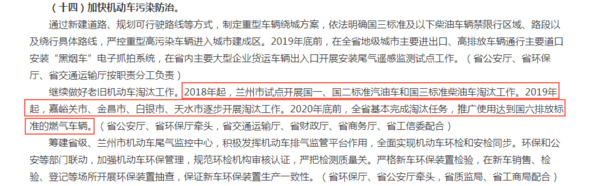 2019年1月1日起,甘肃全省全面供应符合国六标准的车用汽、柴油,停止销售低于国六标准的汽柴油。
