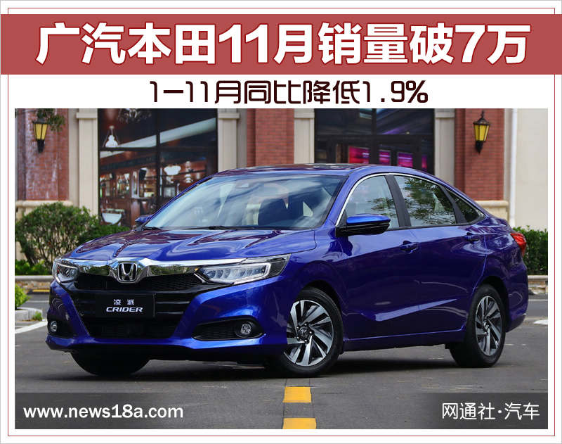 广汽本田11月销量破7万 1-11月同比降低1.9%