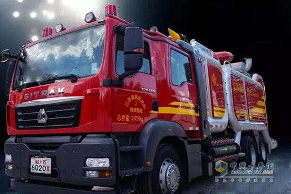 选用SITRAK-C7H特种作业车专用底盘的消防车