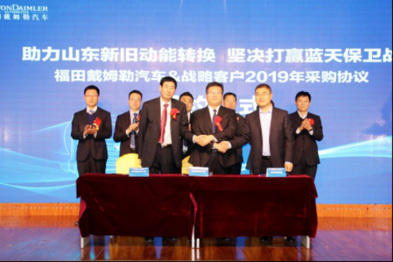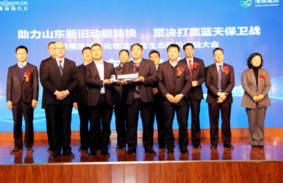 2018年12月15日,聚焦危化品运输行业,由福田戴姆勒汽车主办,以“助力山东新旧动能转换、坚决打赢蓝天保卫战”为主题的淄博区域危化物流行业生态圈价值链大会在山东淄博福来德车行隆重召开。大会期间,福田戴姆勒汽车不仅与清源集团举行了150台危化运输“安全之星”交车仪式,还与山东危化战略客户达成共识,现场签订2019采购协议共480台欧曼危化品运输安全之星,进一步深化福田戴姆勒汽车与山东危化品运输生态圈价值链合作,以安全高效的欧曼危化品运输车及一体化解决方案推动物流业安全与高质量发展。