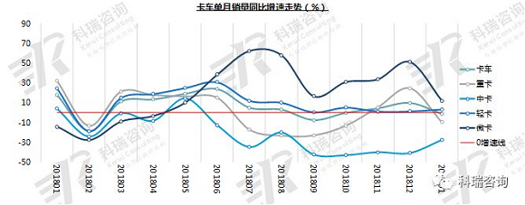 1月,卡车销售31.3万辆,同比下滑1.7%,细分市场中仅轻卡微卡实现增长。