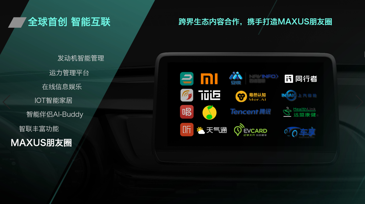 蜘蛛智联还从IOT、自驾达人、车主服务等八大领域进行生态跨界合作,深度打造MAXUS朋友圈。其不仅与米家智能家居生态互通,实现远程控制,可通过地理围栏实现更多智能场景,而且还能提供车载微信、智能语音等近百种智能服务,带来优质的智能出行和用车服务体验。
