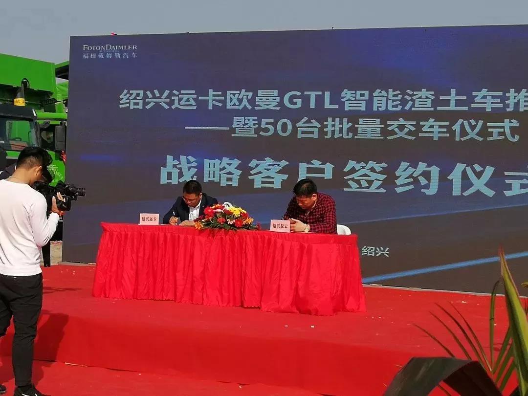 通过现场的学习和了解之后,在活动即将结束之时,欧曼GTL智能渣土车现场再获绍兴振云和绍兴上虞荣达两大客户战略签约,并收获50台订单。
