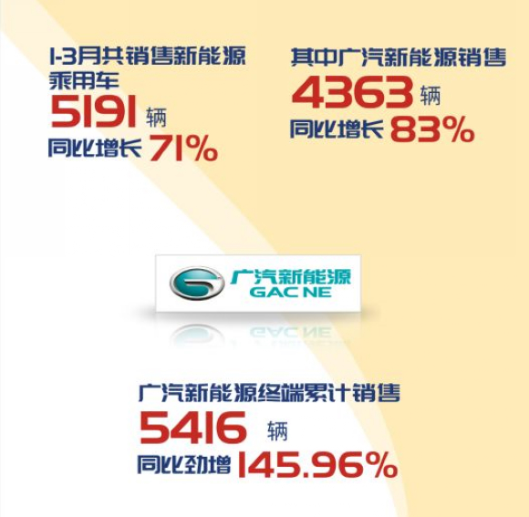 另外,广汽集团今年一季度共销售新能源乘用车5191台,同比增长71%;其中广汽新能源销售4363台,同比增长83%;广汽新能源终端累计销售5416台,同比增长145.96%。显然, 新能源已经成为广汽集团一个有力的增长点。