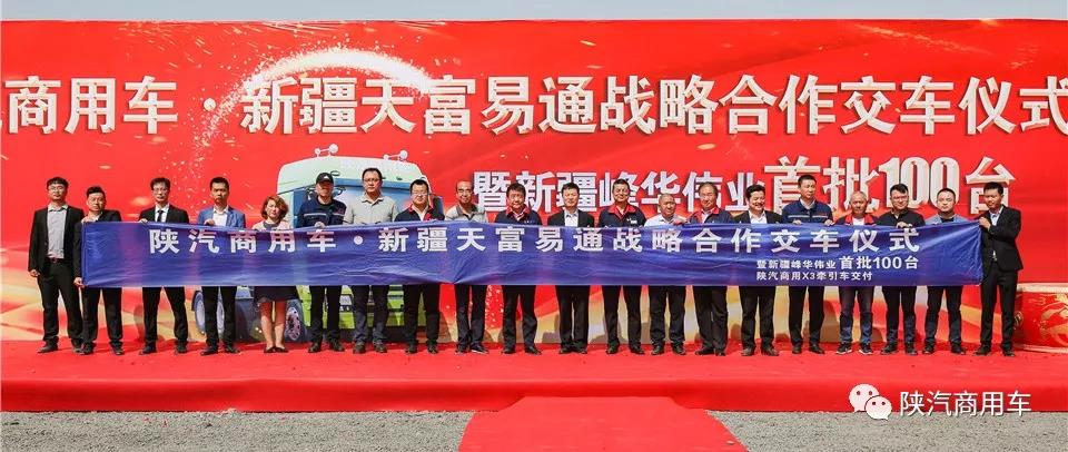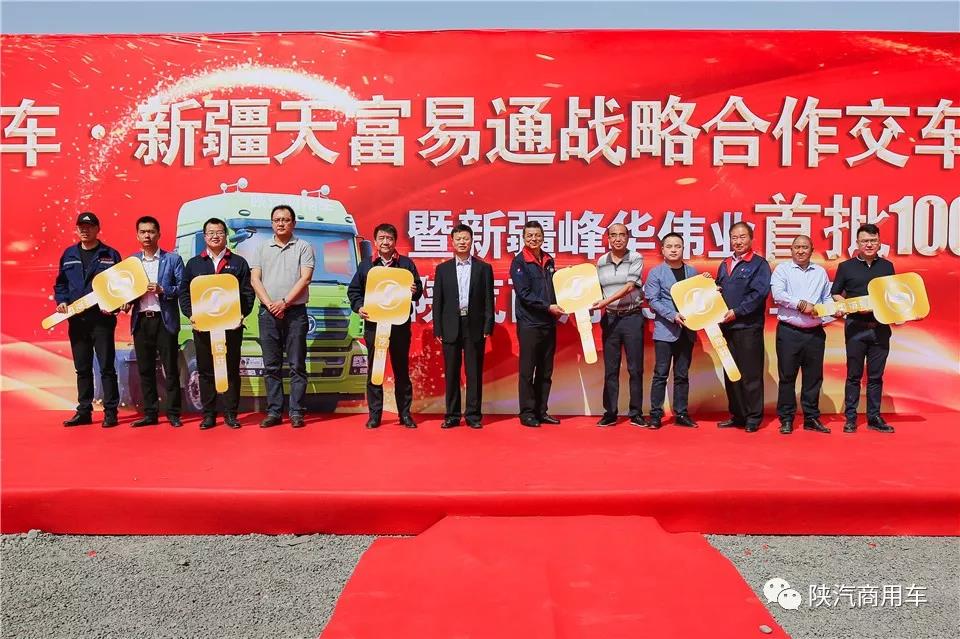 “我们的目标绝不仅是这100台车,后续我们和陕汽商用车、新疆峰华伟业汽车贸易有限责任公司还将有更亲密的合作。”新疆天富易通供应链管理有限责任公司负责人在交车仪式现场说道。