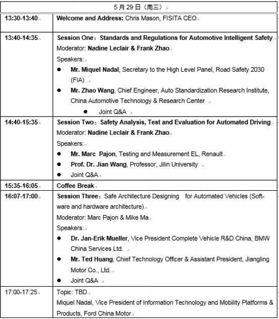 S1:FISITA首届世界汽车智能安全大会日程