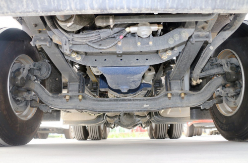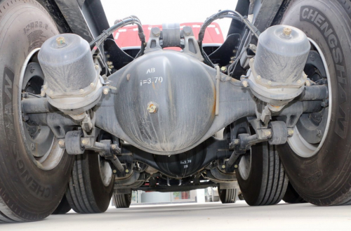 驱动桥采用两个440轻量化后桥,后桥速比3.7,允许荷载18吨。大马力+小速比的黄金动力链组合,可以实现体系节油。