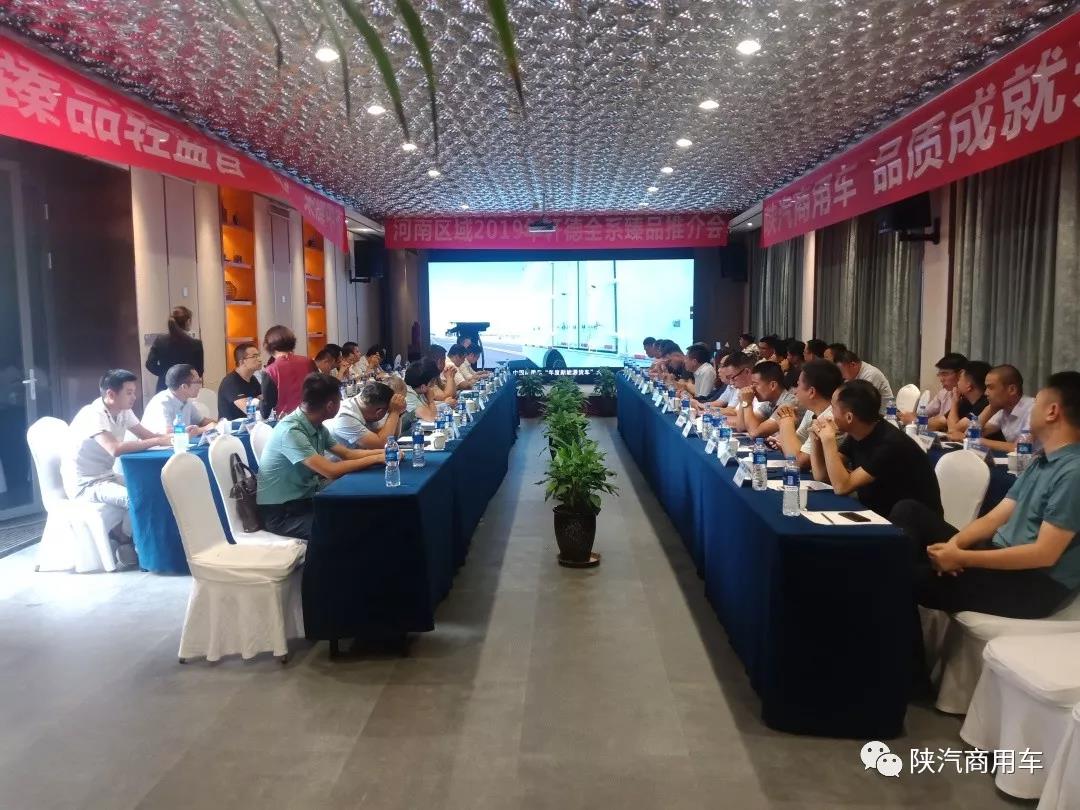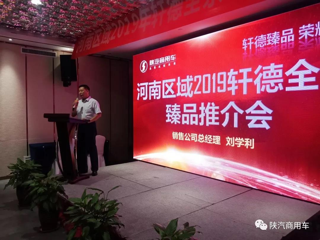 2019年8月31日,以“轩德臻品 荣耀中原”为主题的陕汽商用车河南区域轩德全系臻品推介会在郑州隆重召开。陕汽商用车销售公司总经理刘学利、销售公司副总经理李延涛、销售公司市场部部长叶建勇、销售公司专用车部副部长马魁、德银租赁、配套厂商、河南区域重点经销商以及服务商等应邀参加此次盛会,会议由销售公司副总经理李延涛主持。
