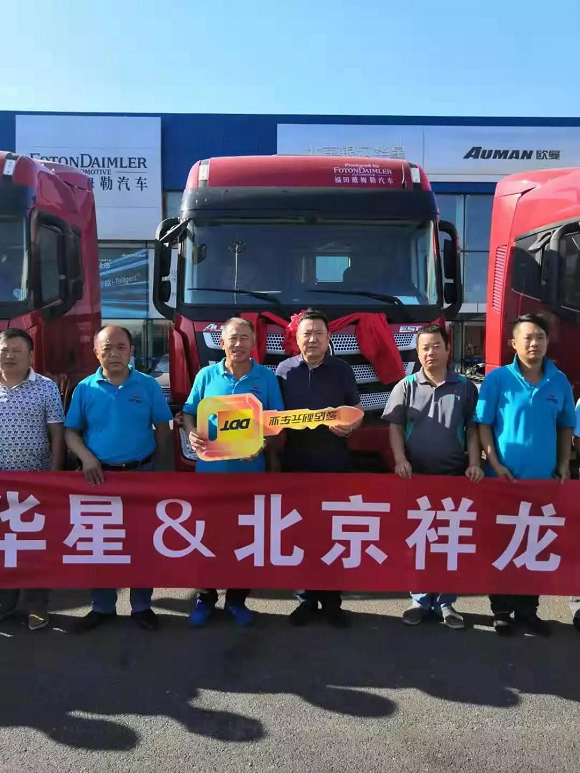 交车仪式现场,来自福田戴姆勒汽车、祥龙物流、北京银汉华星的领导嘉宾及北京区域客户代表等共同参与见证,这也是欧曼国六牵引车自发布以来的首批交车,标志着欧曼牵引车新品开始以成熟国六技术服务客户。此前,北京银汉华星已经交付了近200台欧曼国六法规渣土车产品。