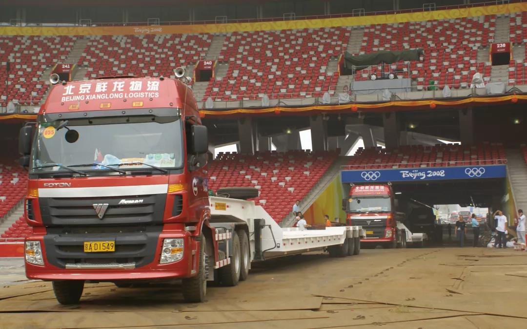 【2008年,祥龙物流与欧曼重卡共同承担奥运开幕式主场馆建设及设备运输任务】