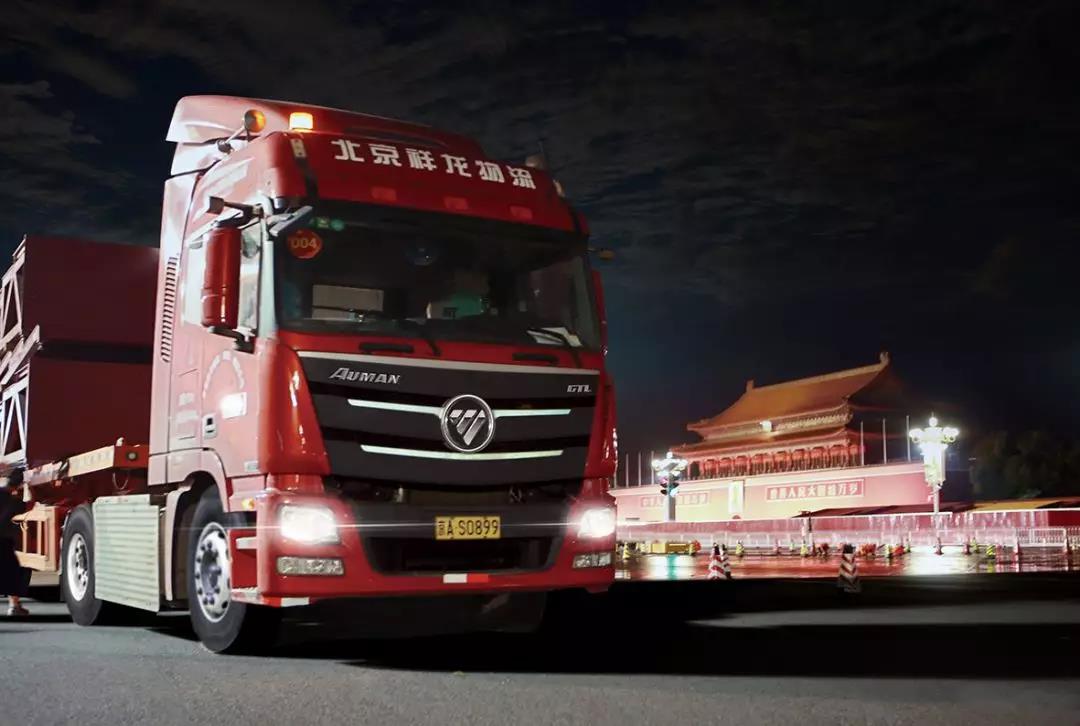 【2015年在历时25天的阅兵筹备保障任务中祥龙物流与欧曼共出动了73辆欧曼重卡,双方投入300余人的保障团队夜以继日往返于设备基地和天安门观礼台1200余次,圆满完成了为胜利日阅兵场地搭建观礼台和运输设备的光荣使命。】