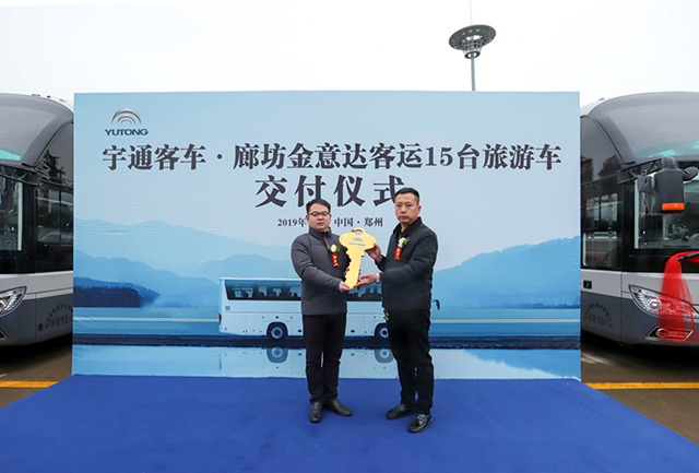 宇通客车廊坊金意达客运15台新车交付仪式现场