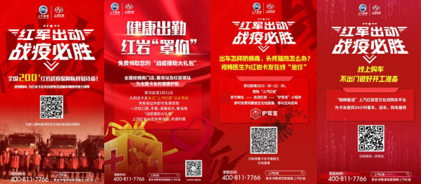 卡友们为疫情物资运输保驾护航,上汽红岩为卡友枕戈待旦。为全面支持全国各地驰援疫情的物资运输工作,上汽红岩动员售后服务力量,迅速推出五项战“疫”保障措施,时刻满足全国红岩用户不时之需,为抗疫救援物资运输保驾护航。上汽红岩在全国成立了200多家“红岩战疫保障队”,随时待命。即日起至2月9日,对于所有上汽红岩车辆提供无条件外出服务,不论是否在保修期内,均可免外出救援费,第一时间解决车辆问题。