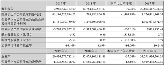 与此同时,众泰也发布了2019年年报显示,报告期内,公司合计生产汽车16,215辆,销售汽车21,224辆。报告期内公司完成销售收入298,584.71万元,同比下降79.78%,实现利润总额-1,178,114.61万元,同比下降-1874.38%,归属于上市公司股东净利润-1,119,022.38万元,同比下降1498.98%。
