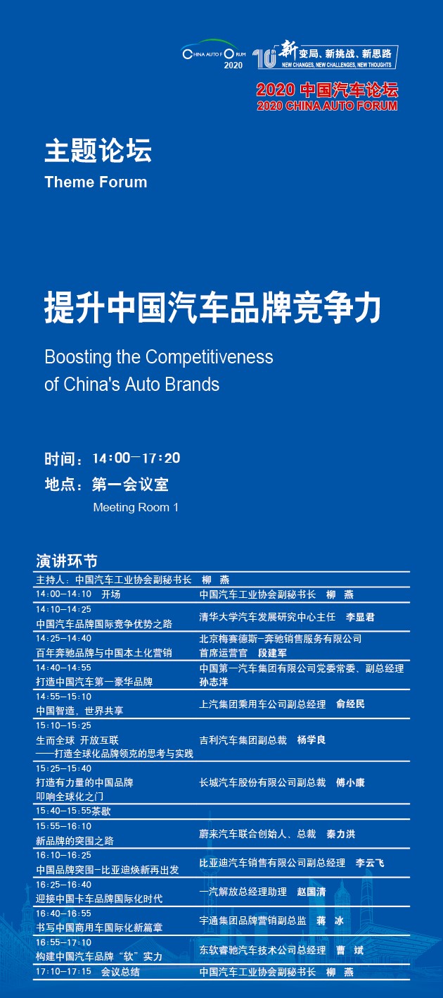 为此,2020年中国汽车论坛特设立“提升中国汽车品牌竞争力”主题分论坛。这也是中国汽车论坛首次设置探讨品牌建设的主题论坛,邀请到的均为国内外顶尖企业的首席品牌官。