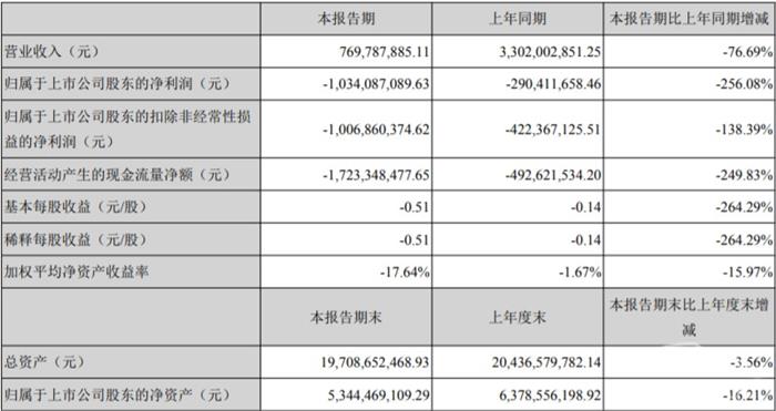 数据显示,2020年上半年众泰汽车的营业收入为7.7亿元,同比下降76.69%;归属于上市公司股东净利润亏损高达10.34亿元,同比下降256.08%。
