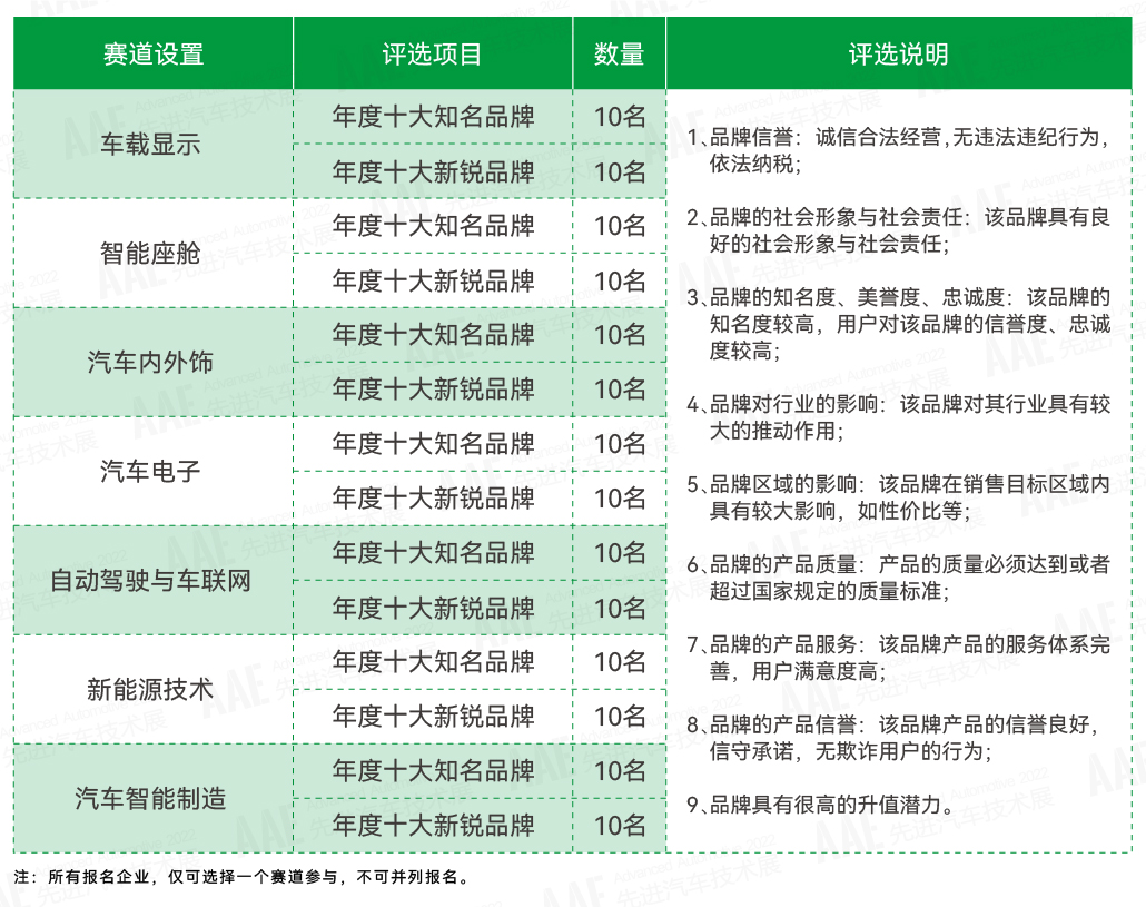 2022展览之际,面向全球汽车供应链举办AAE 2022先进汽车技术创新大奖品牌评选活动。