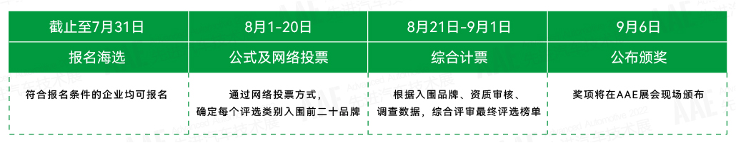 本次评选活动的颁奖典礼将于2022年9月6日在AAE2022深圳国际先进汽车技术展现场揭晓并颁奖。