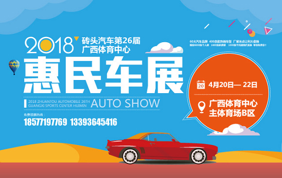 2018砖头汽车第26届广西体育中心惠民车展(以下简称“南宁车展”),将于4月20日至4月22日在南宁市广西体育中心盛大举行。本次展会由砖头汽车、星星汽车网、广西体育中心强强联手打造,广西砖头网络科技有限公司执行承办。展会为期3天,每天9:00至17:30。