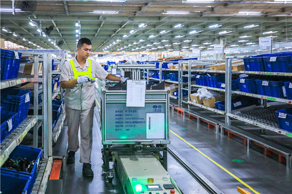 一汽-大众佛山分公司主管IT系统支持工程师左志军介绍,华南基地基础设施领先,自动化率高,而且将新技术引入工厂工作流程中。