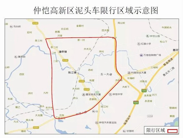 四、因建设施工,需要在禁行区域内通行的泥头车,须到惠州市公安局交警支队仲恺大队备案后,按指定路线、时间通行。