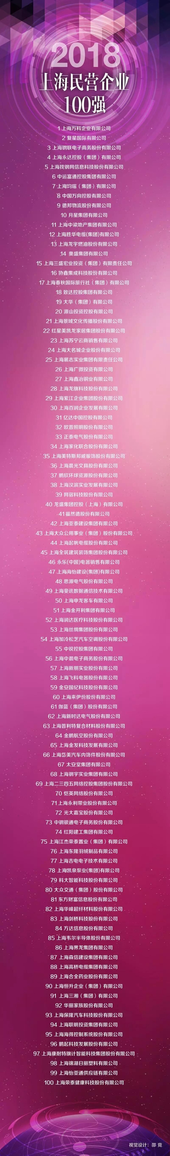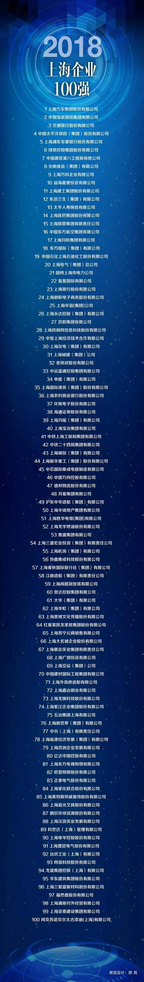 与上海百强榜同时亮相的还有2018上海制造业企业100强、上海服务业企业100强,2018上海民营企业100强、上海民营制造业企业100强、上海民营服务业企业100强和2018上海成长性企业50强排行榜。本次系列榜单由上海市企业联合会、上海市企业家协会和上海市经济团体联合会共同发布。