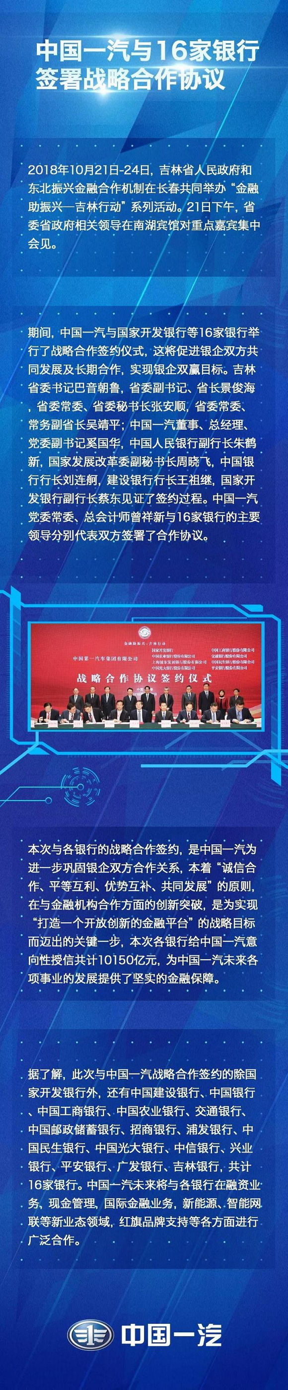 以下是中国一汽与16家银行签署战略合作协议公告原文: