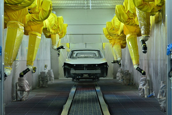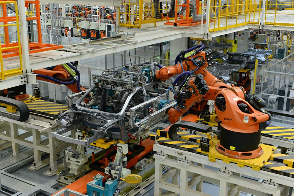焊装车间采用自主研发的多车型柔性切换系统,可实现1分钟快速切换