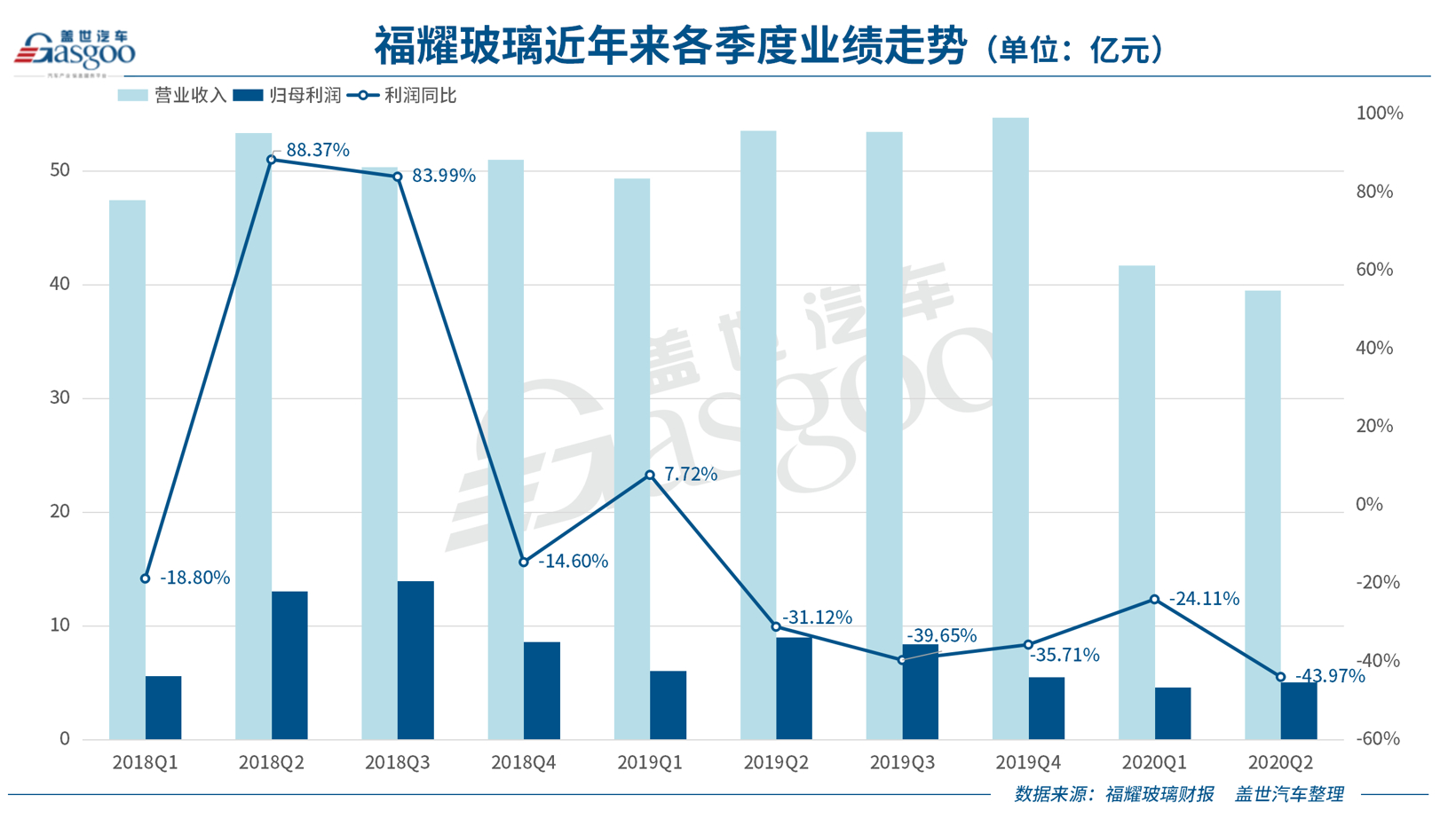 单季度来看,受海内外疫情和去年同期高基数影响,今年二季度中,福耀玻璃营业收入39.51亿元,同比下降26.21%,环比一季度也下滑了5.27%;净利润则为5.04亿元,同比下降43.97%,但环比一季度上涨了9.58%。