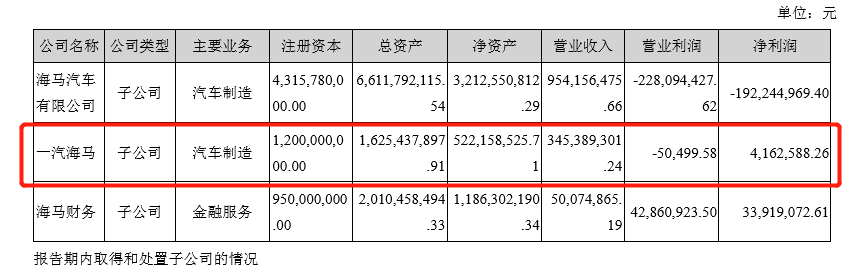 上半年海马汽车子公司经营情况(图表来源:海马汽车半年报)