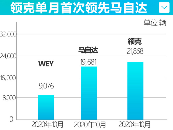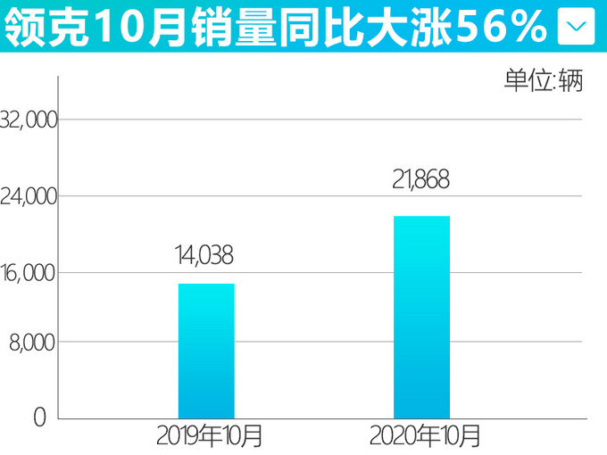 11月6日吉利汽车公布了最新销量数据,高端子品牌领克10月销量达到21,868辆,同比大涨56%。首次突破2万辆的同时,领克销量也第一次超过同样以技术、设计见长的“小而美”的合资品牌马自达,后者10月销量为19,681辆。