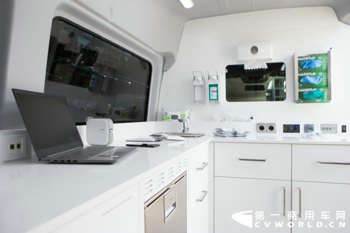 曼恩新冠病毒移动检测车搭载177马力的2.0L涡轮增压柴油发动机,匹配8速自动变速箱,并有全轮驱动可选。除了标配卫生台面、自动滑动门、空调系统、辅助空调系统以及自动踏板以外,曼恩检测车还可以选装最多两个洗手盆(分别置于检测室和拭子取样室)、一个220伏电源的计算机工作站以及一台冰箱。