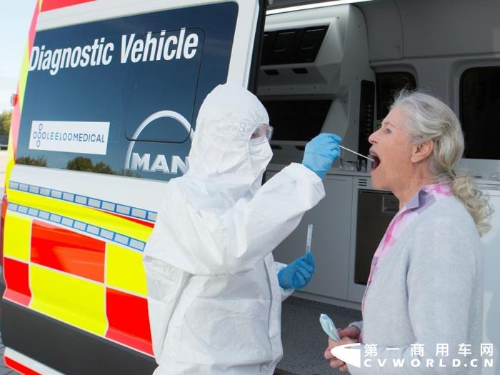 用于快速新冠病毒检测的曼恩检测车适用于全欧洲,现已在欧盟27个成员国及3个非成员国提供预定。首批两辆曼恩新冠病毒检测车已于2020年10月下线。