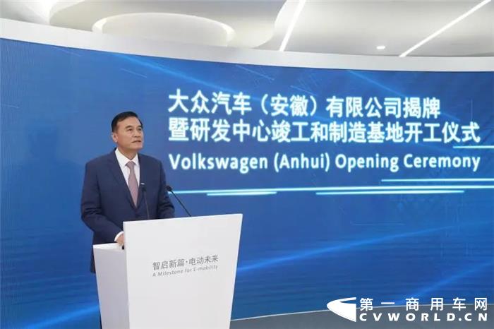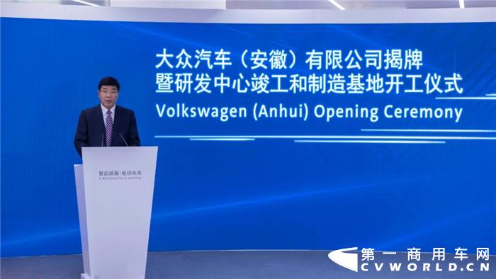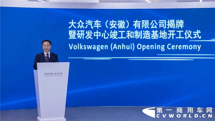 李国英在致辞中指出,新能源和智能网联汽车是未来汽车产业转型发展的大势所趋,是安徽加快构建现代产业体系的重要领域。这次大众汽车(安徽)有限公司揭牌、研发中心竣工和制造基地开工,既是双方合作成果的生动展现,更是新阶段深化合作的崭新起点,将助力安徽加快打造新能源和智能网联汽车等新兴产业集群。我们将把握制造业高质量发展和高水平对外开放的新要求,加快打造新能源和智能网联汽车等新兴产业集群,着力提升产业基础能力和产业链现代化水平。