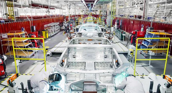 据了解,前途K50集新材料、新工艺为一体,全铝合金框架式车身仅重243kg,比使用传统钣金钢制车身减重约38%。而周身还有29个碳纤维复合材料的零部件,这些零部件的总重量仅为46.7千克。整个全铝合金车身框架与碳纤维覆盖件相结合的轻量化结构,使前途K50整备质量降低250~300kg。为此,与传统汽车制造工厂的四大工艺模式不同,苏州生产基地特设了“碳纤维快速模压车间”和“全铝车身焊接车间”。