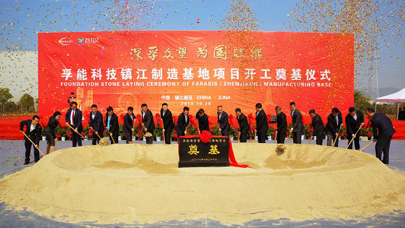 2018年10月26日,由孚能科技与中国国新、镇江经济技术开发区三方共同发起的孚能科技镇江制造基地项目在镇江新区举行了盛大奠基仪式。该项目占地约580亩,建成后每年可满足约四十万台新能源车的配套动力电池使用。镇江市委书记、市人大常委会主任、党组书记惠建林,镇江市市长张叶飞,镇江市常委、镇江新区党工委书记秦海涛,镇江市委常委、秘书长郭建,镇江新区党工委副书记、管委会主任薛峰等镇江市领导,中国国新控股有限责任公司总经理莫德旺,中国国新控股有限责任公司副总经理黄耀文,中国国新基金管理有限公司首席战略官王志刚,孚能科技董事长王瑀,孚能科技首席财务官陈晓罡及主要厂商和供应商合作伙伴等参与了奠基仪式。
