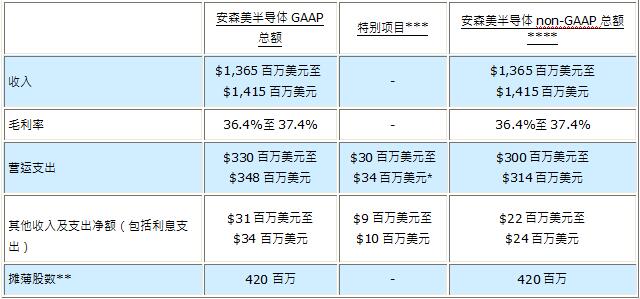 下表概列安森美半导体2019年第1季度的GAAP及non-GAAP展望。