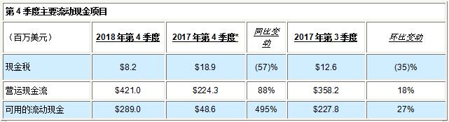 2019年第1季的度展望包括以股票支付报酬的预期支出约19百万美元至21百万美元。预期缴付所得税的净现金为16百万美元至20百万美元。