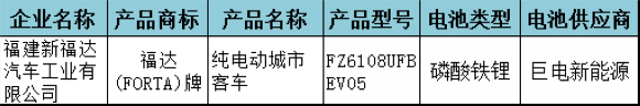 值得一提的是,在2月19日工信部公示的申报第317批《道路机动车辆生产企业及产品公告》新产品中,巨电新能源也上榜了公告,其为新福达汽车的一款纯电动客车配套了磷酸铁锂电池。
