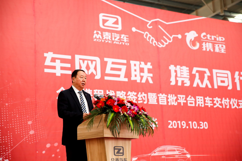 2019年10月30日,“车网互联 携众同行”众泰携程战略签约暨首批平台用车交付仪式在众泰汽车金华基地隆重举行。战略合作方主要领导及近百名媒体、嘉宾一同出席,见证此次活动。众泰汽车股份有限公司副总裁连刚先生、副总裁兼销售公司总经理董世超先生、副总裁徐洪飞先生,携程集团副总裁、租车事业部CEO王玉琛先生、携程租车事业部总裁彭廷先生等,受邀出席此次活动。签约仪式前,参与此次活动的嘉宾在讲解员的带领下依次参观了众泰汽车金华基地标准化的冲压、焊装、涂装、总装车间。