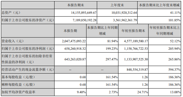 亿纬锂能第三季度盈利6.58亿 同比增长199.23%